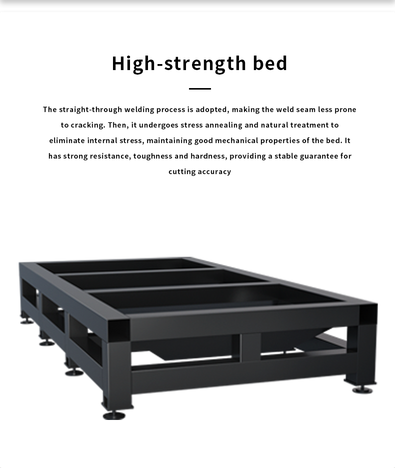 The body of the machine adopts the most mainstream plate welding bed processing method at present,using 10M thick steel plate welding. After welding is completed, mature thermal annealing is used to remove stress, and the work piece is heated to the temperature range of the plastic state.